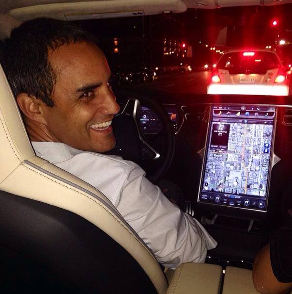 Juan Pablo Montoya is a racing legend who has won the Indy 500, the Monaco GP, the Daytona 24, and he raced in NASCAR. This became apparent when he posted a picture of himself at the wheel of a Tesla Model S on Facebook, which stood out especially because of its 17 inch LCD screen.