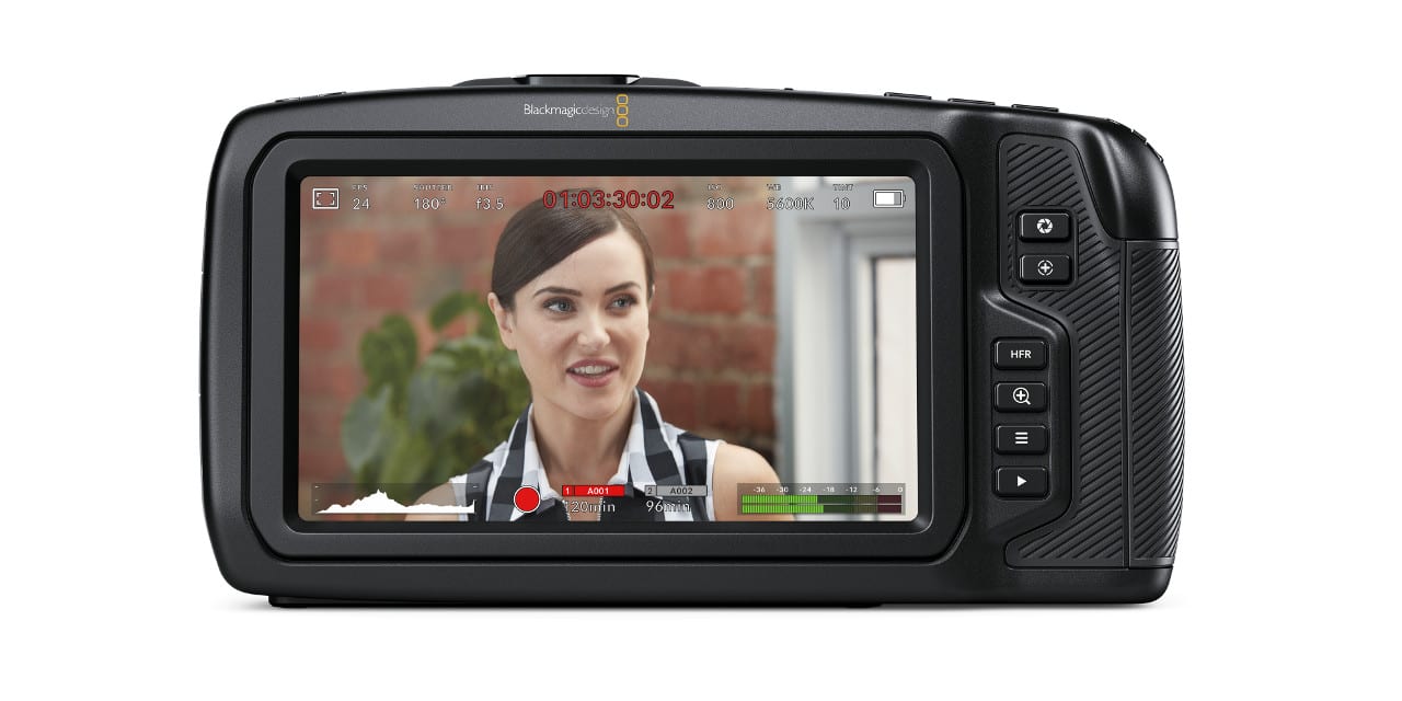 The new 4K pocket cinema camera records 4K video in the 10-bit ProRes and 12-bit RAW formats at 60 fps (without the 5-minute limitation imposed by smartphones), which are important in the movie industry (especially RAW for video editing). It has a Micro Four Thirds (MFT) lens mount, four microphones, a full-size HDMI port that can output HDR video, and a mini-XLR input to connect professional boom microphones. It is also equipped with a relatively large 5″ screen.