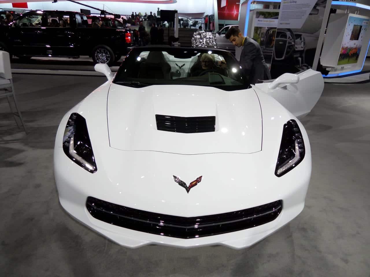 White 2014 Chevrolet Corvette Stingray sports car.
