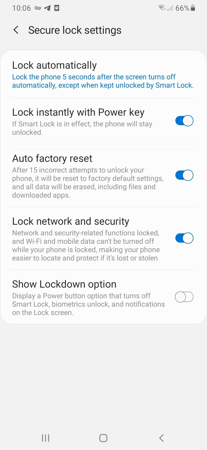 Enable ‘Auto factory reset’ and ‘Lock network and security’: