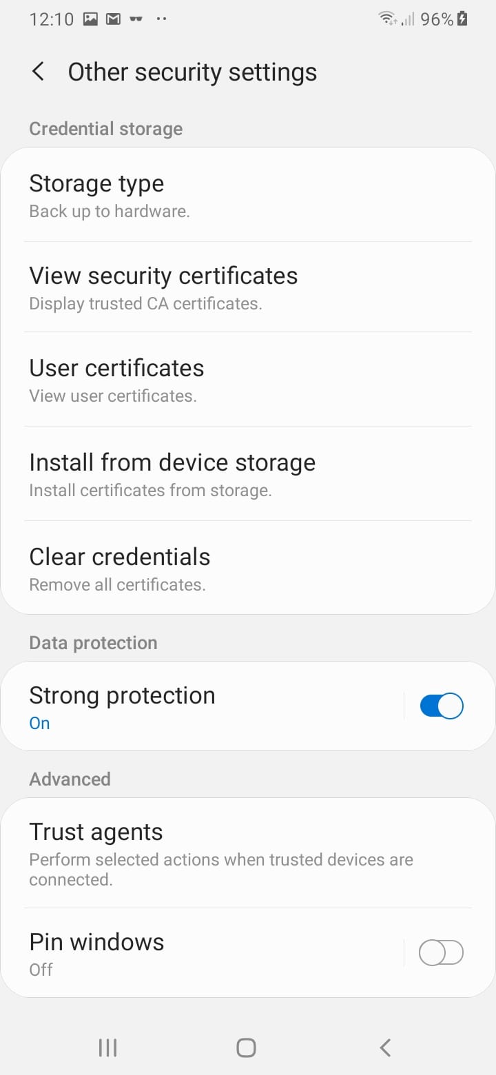 Encryption settings unfortunately vary between Android versions. To turn on encryption in Android 9 – you go to Settings > Biometrics and Security > Other Security Settings > Tap the checkbox for Strong protection.