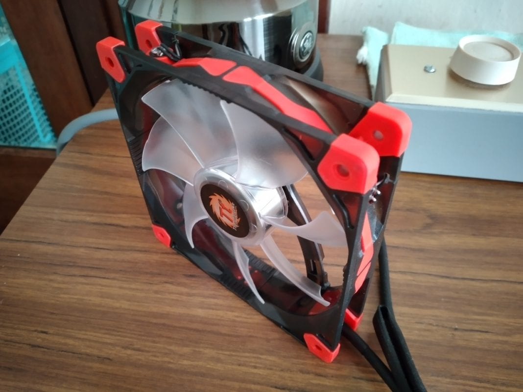 Thermaltake touts the Luna 12’s rubberized corners and screw holes that reduce the amount of vibration that enters the case (thereby reducing noise levels). They worked fairly well, although i’m not sure why they had to be red (I would expect them to be blue on the blue version of the fan, red for the red version, etc). Despite that, it is still a beautiful fan.