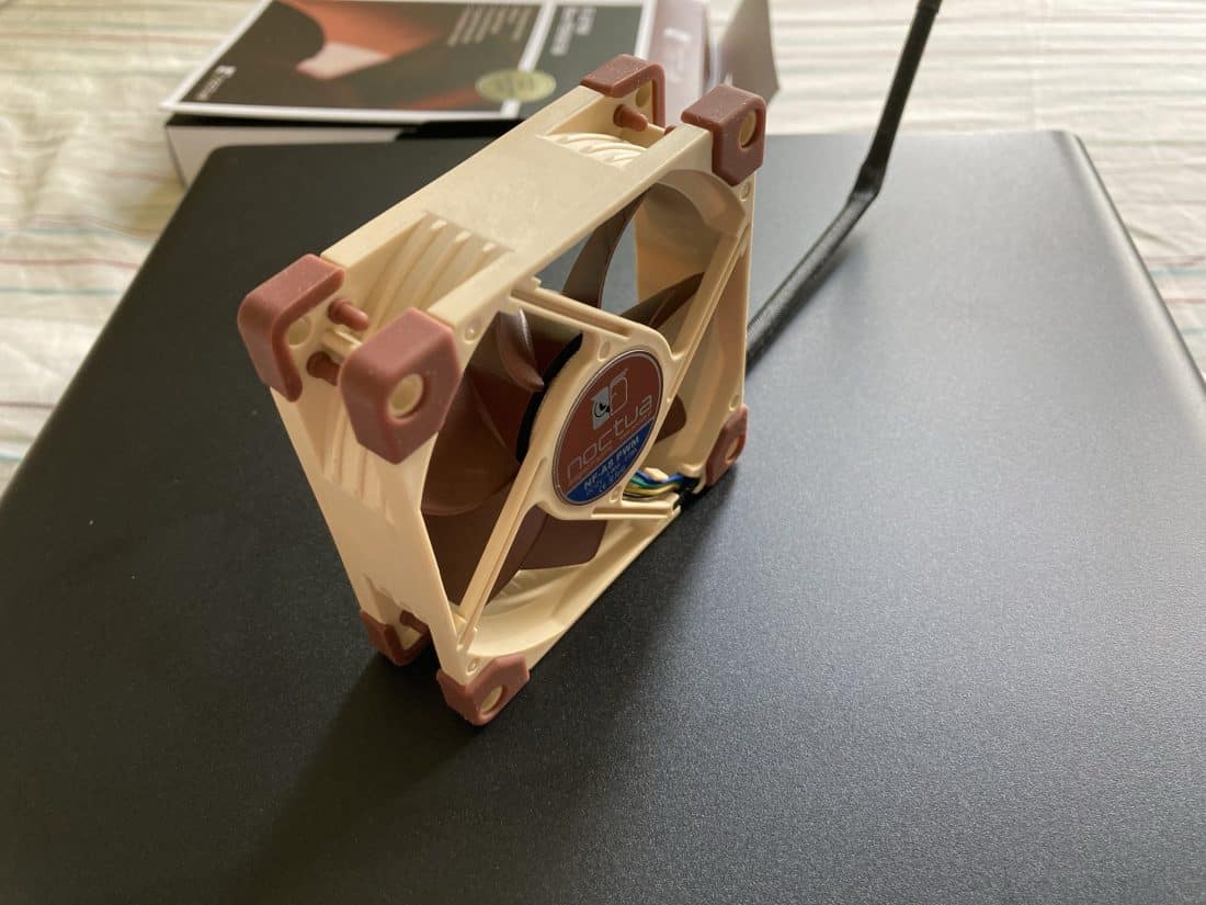 The NF-A8 is one of the quietest fans i’ve ever heard. It is audible at the highest speed, but still quite smooth and relatively easy on the ears — thanks in part to its SSO2 bearings. The performance (32.5 CFM) it offered was reasonable relative to its size and low power consumption. The build quality of the fan was also impressive. It’s made of plastic, but it didn’t look or feel cheap. The included vibration dampeners on each corner reduce vibration that may occur between the heat sink and fan body. The fan is also backed by a lengthy 6-year warranty.