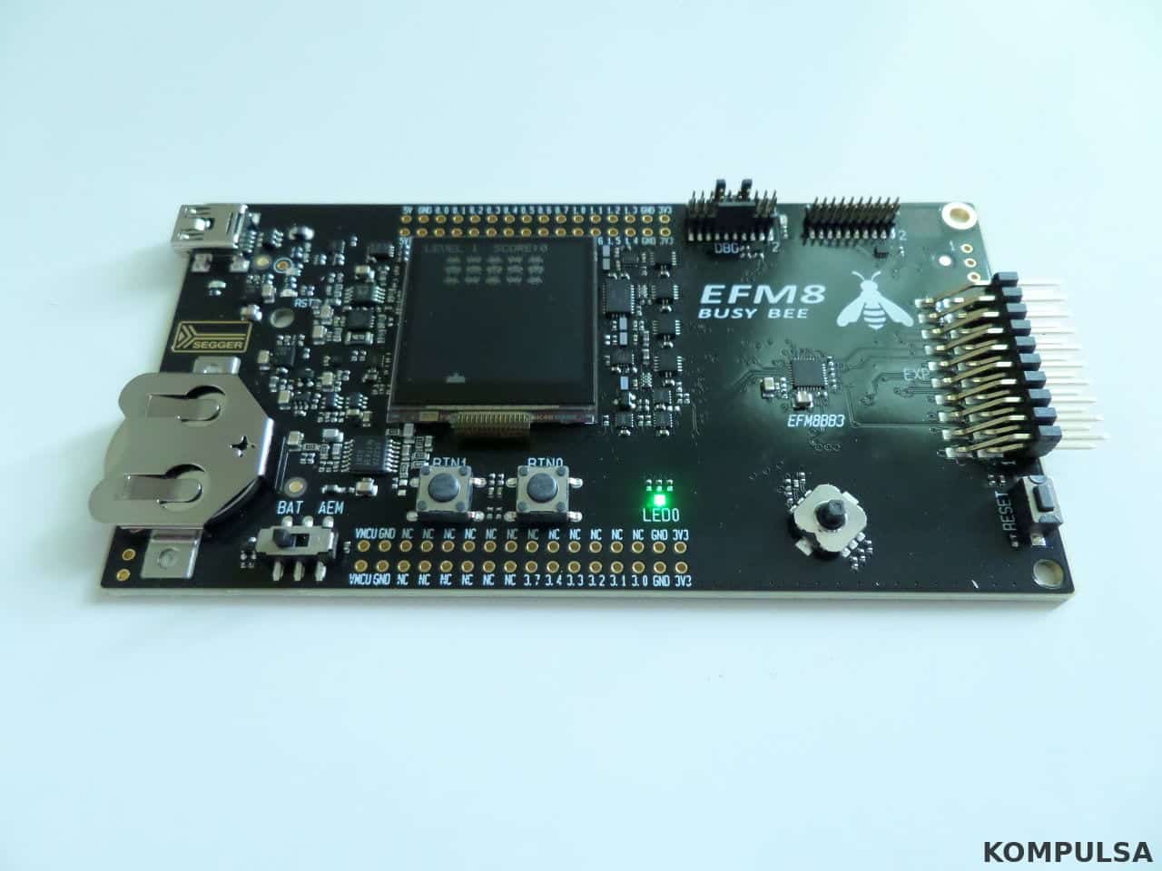 Before we continue, take a look at the EFM8BB3 itself. If you’re using it with the SLSTK2022a starter kit, what it does is help you to debug and connect things to it more easily, as the EFM8BB3 is a very tiny microcontroller!
