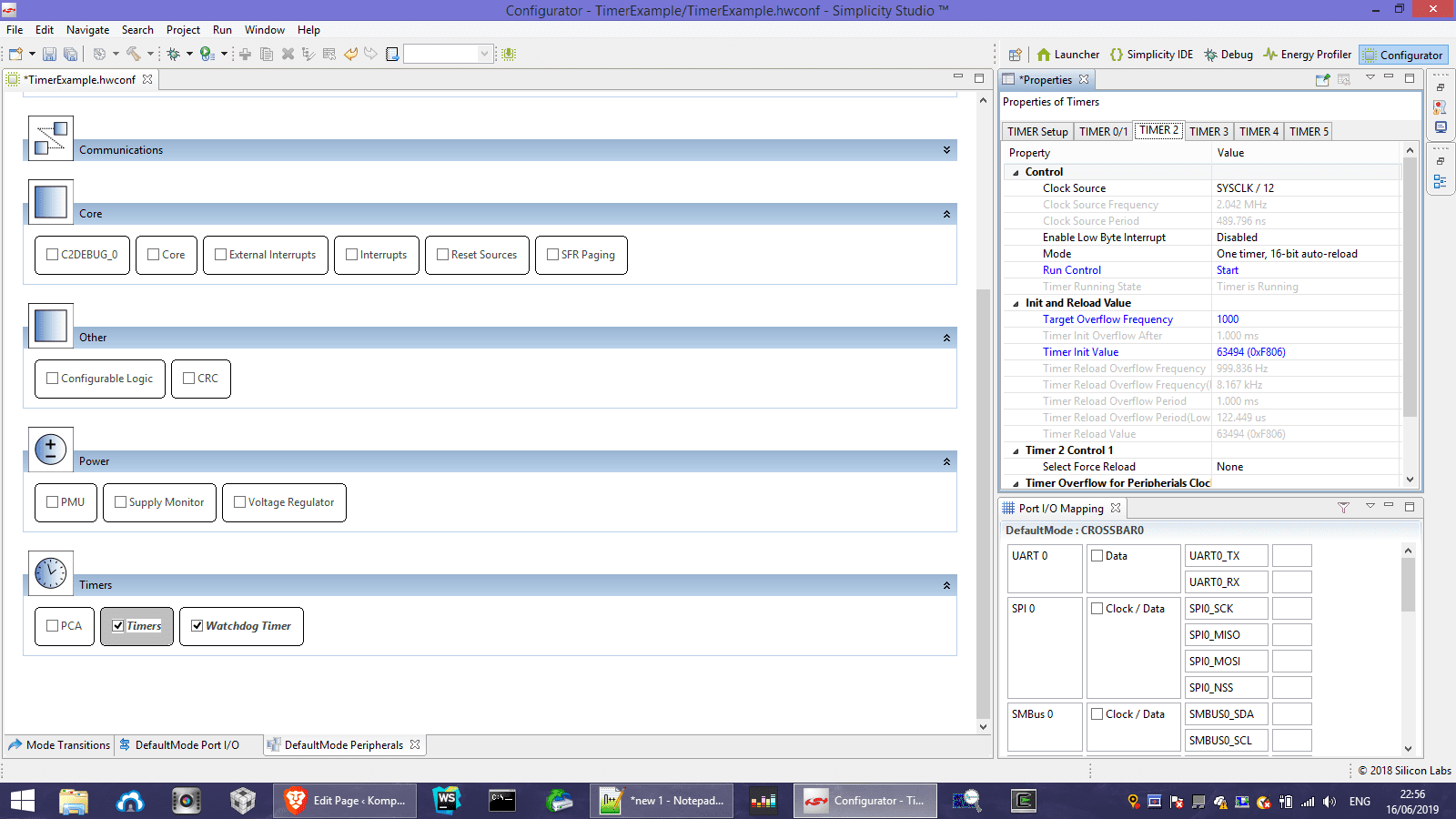 Now select ‘Clock Control’ and set ‘Clock Source Divider’ on the right side of the screen to ‘SYSCLK / 1’. ‘Select Clock Source’ should be set to ‘Internal High Frequency Oscillator 0’. Now you can select ‘Timers’.