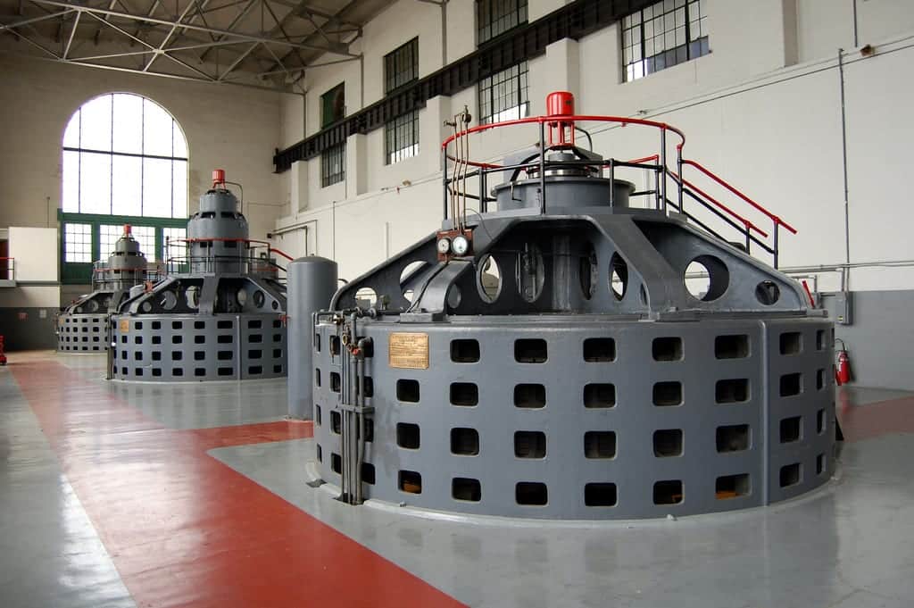 As for how these hydroelectric power plants generate electricity: The motion of the water is kinetic energy and this movement pushes the turbine blades, causing them to turn.