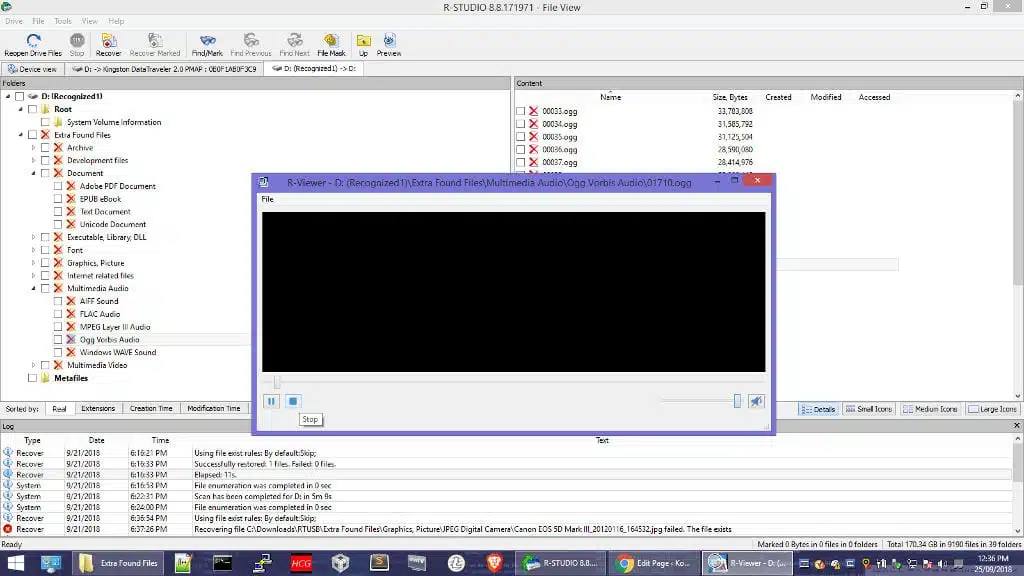 To recover music in the MP3, Ogg, and FLAC format, double-click them in the same view. ‘R-Viewer’ will launch and play the song so you can identify it and see if it is in pieces or if it’s fully intact. For other file formats that may be uncommon, the R-Viewer may not be able to play or open them, so you may have to wait until you use the ‘Recover all files’ option and look at those files later with your preferred app.