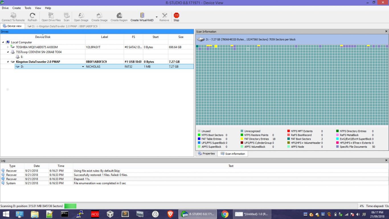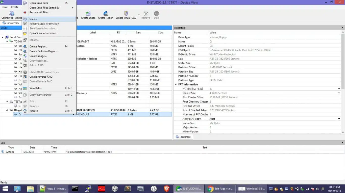 In this tutorial, we will use the R-Studio data recovery utility to scan the affected drive (this works for both internal hard drives as well as USB-drives) and assist us with the data recovery procedure. Launch R-Studio and right-click the affected drive (more specifically the partition on the affected drive), which in this case is Drive D: on the Kingston DataTraveler.