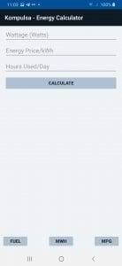 This fuel and energy calculator app can calculate the energy usage of many appliances or other devices, big or small. Supported devices range from a light bulb to large industrial equipment in the megawatt range. The calculator can also: