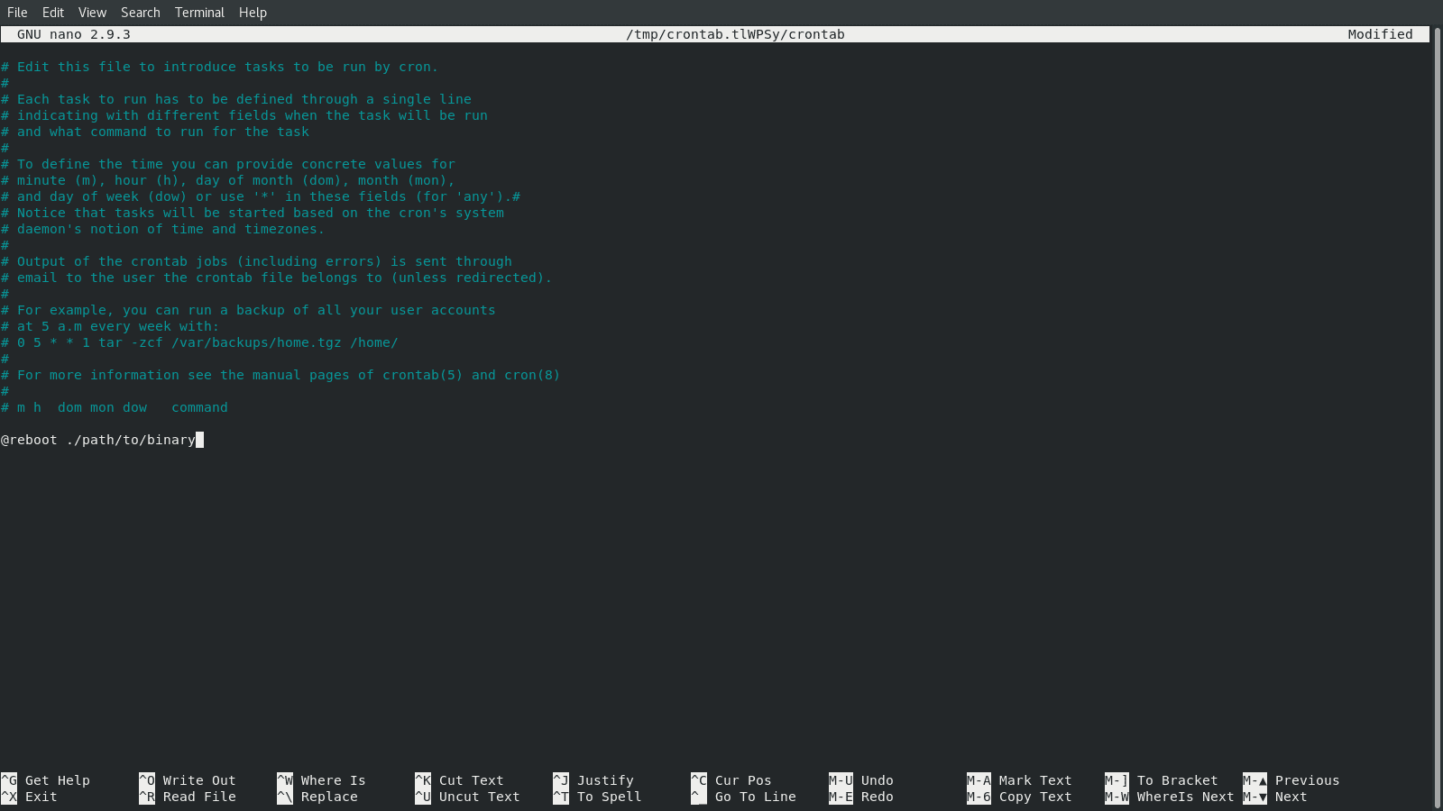 crontab -e