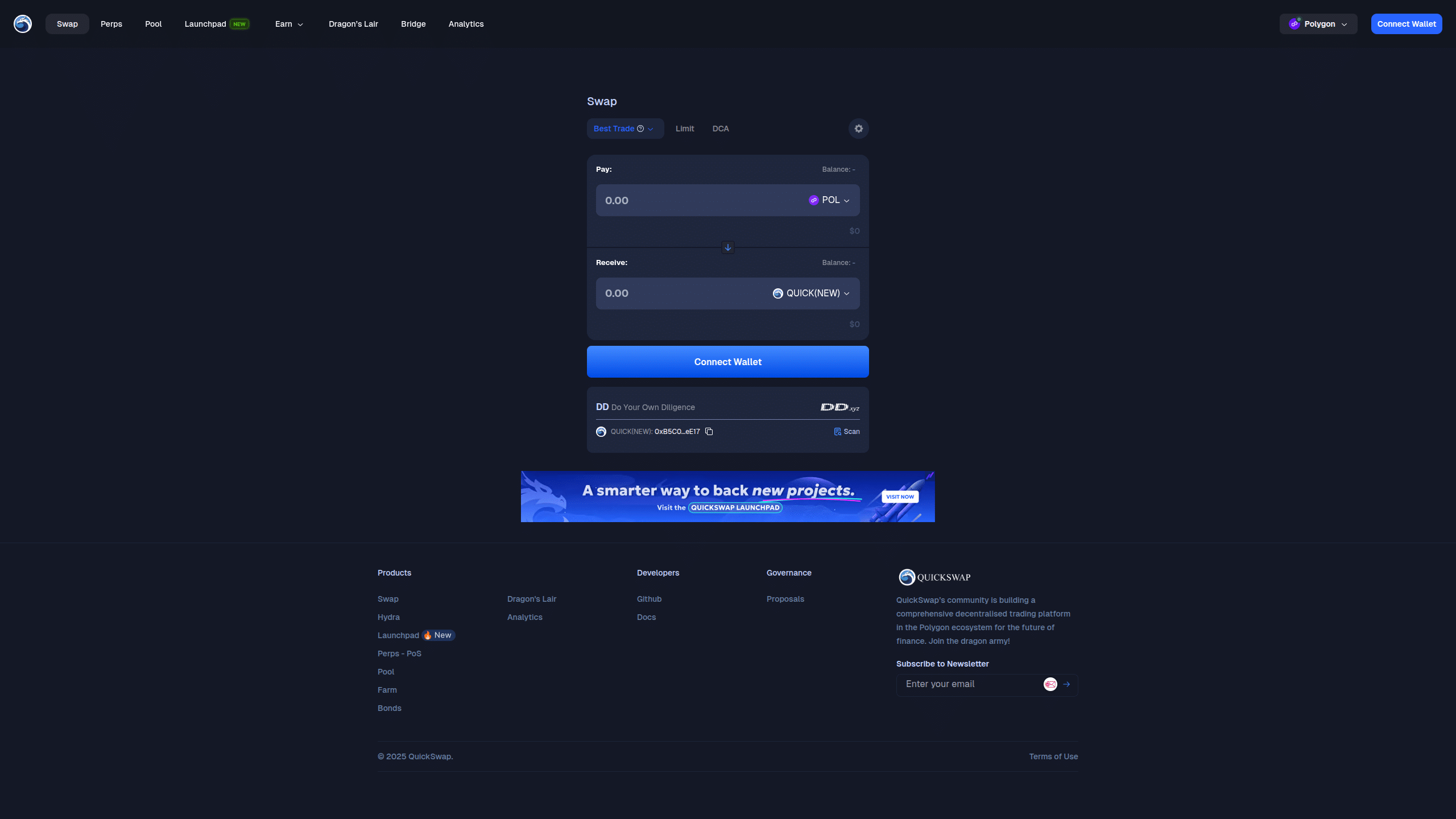 Ethereum is a decentralized network of thousands of computers — each of which maintains a copy of its blockchain and protects the integrity of the network and the software running on it (the software running on it is referred to as dApps). Polygon’s role in this case is to reduce fees and increase the speed of dApps running on Ethereum. QuickSwap is one of these dApps.